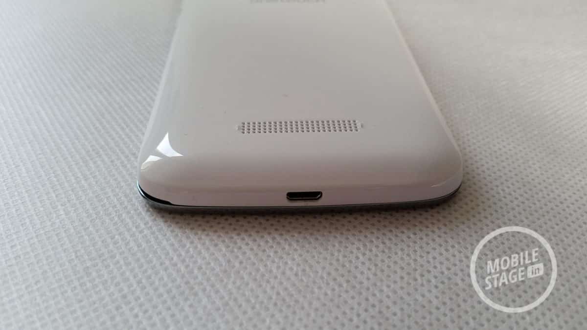 Boki POP C7 składają się z dwóch części – pierwsza to srebrna ramka, druga zaś to plastikowa obudowa w kolorze białym, na której umiejscowione zostały przyciski. Patrząc od dołu mamy dostęp do wejścia micro USB, lewa strona pozostała pusta, na górze znajdziemy wejście mini-jack, zaś z prawej przyciski regulacji głośności i zasilania. Klawisze fizyczne są stabilne i dobrze spasowane. Jedynie fakt, że są one częścią tylnej klapki powoduje drobne obawy dla użytkowników, którzy często wymieniają karty microSD / SIM i mogą przez przypadek wycisnąć wytłoczone przyciski. Sytuacja stricte teoretyczna, ale sam tego doświadczyłem na analogicznym rozwiązaniu w przypadku innego modelu.