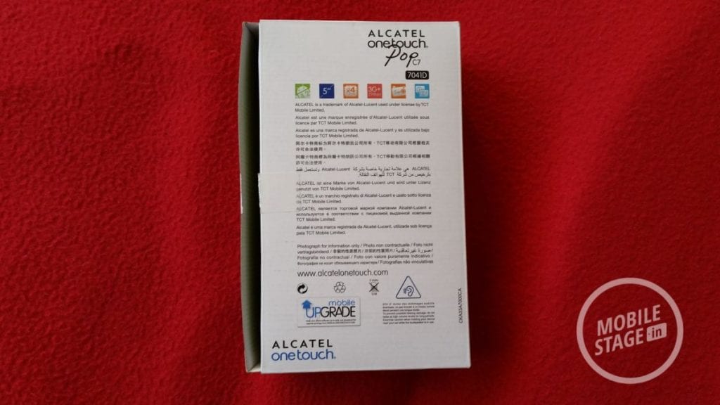 Alcatel OneTouch POP C7 dotarł do redakcji w kartonowym opakowaniu, które zbliżone jest wyglądem i wykonaniem do pudełek, które dostarcza Goclever, Overmax czy Zopo. Kartonik jest kolorowy i zawiera dość dużą ilość informacji związanych ze specyfikacją telefonu.