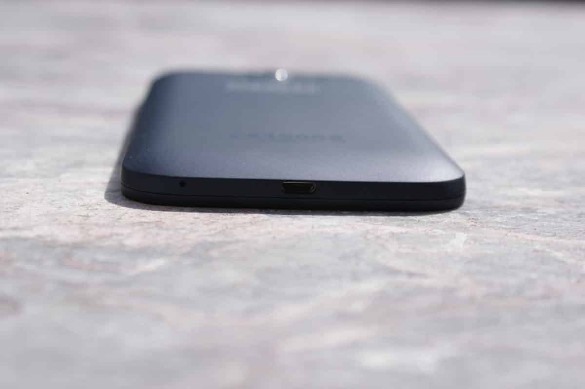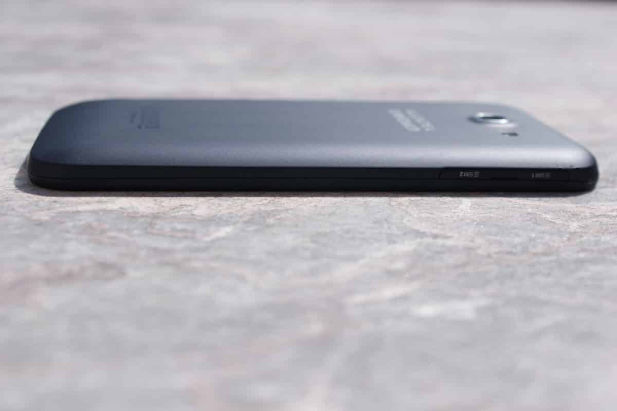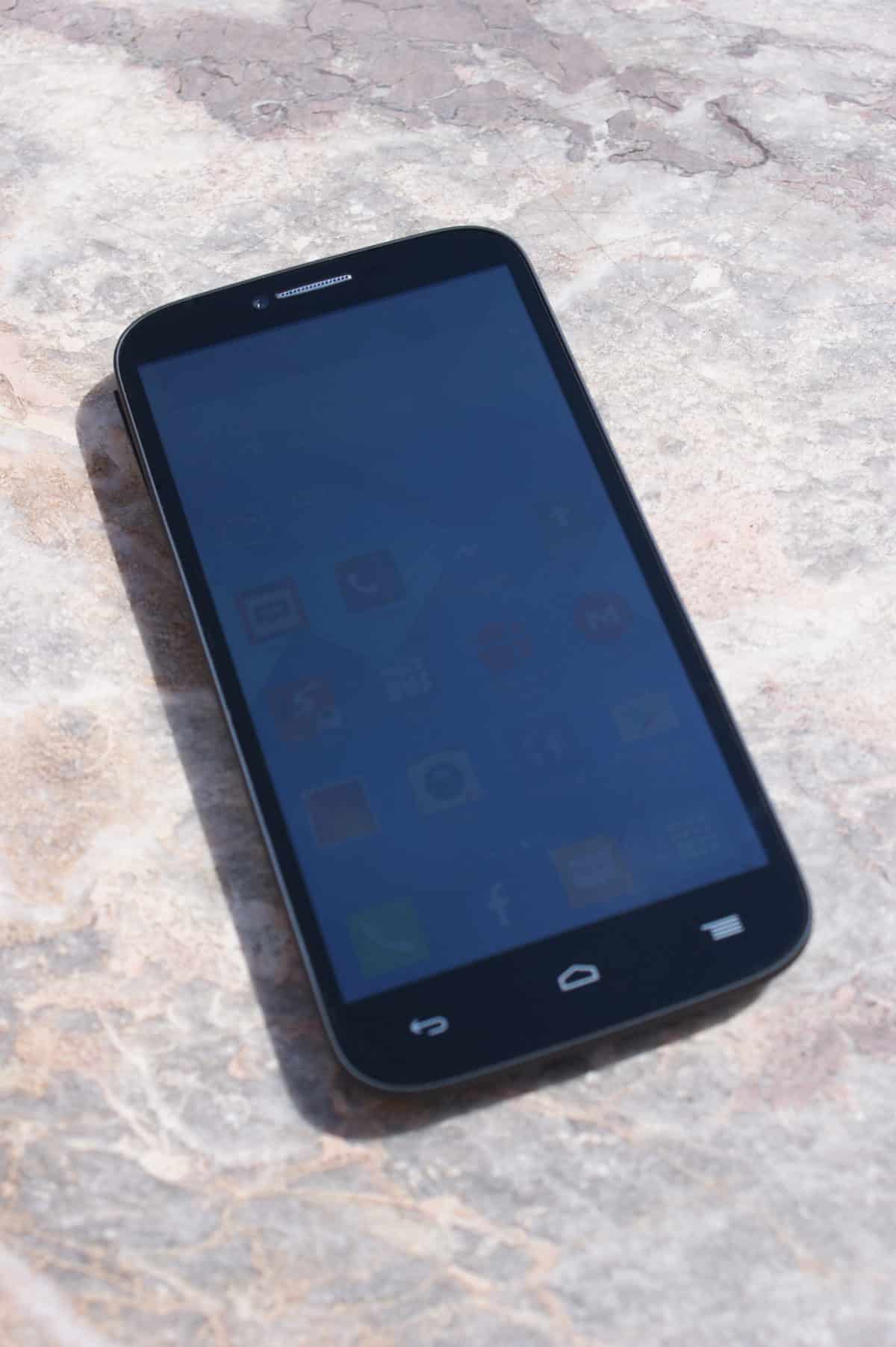Pierwsze wrażenie jakie ma się po wzięciu tego telefonu do ręki jest bardzo pozytywne (jak na tę półkę cenową). Konstrukcja jest dość ciężka, przez co wydaje się bardzo solidna. Obudowa całego telefonu wykonana jest z plastiku. Na szczęście nie jest on błyszczący jak w urządzeniach Samsunga, tylko matowy, niezbierający odcisków i bardzo przyjemny w dotyku. W modelu tym mamy niewymienialną baterię i niezdejmowalną tylną klapkę. Z przodu urządzenia mamy: przedni aparat, głośnik, czujniki, 5,5-calowy ekran oraz przyciski dotykowe. Z tyłu znajdziemy jedynie główny aparat, lampę błyskową i głośnik. Na prawej krawędzi umiejscowiono: zasłonięty zaślepką slot na kartę pamięci, przyciski głośności oraz przycisk blokady ekranu. U góry znajduje się jedynie gniazdo słuchawkowe. Po lewej również skromnie – jedynie sloty na 2 karty microSIM, również zasłonięte jedną wspólną zaślepką. Natomiast na dolnej krawędzi znajdziemy mikrofon oraz gniazdo ładowania.