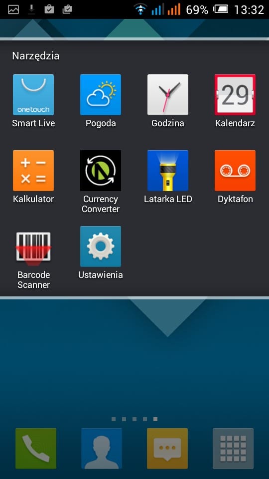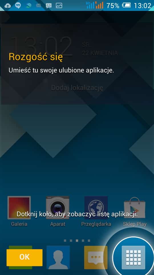 Alcatel Onetouch POP C9 działa pod kontrolą Androida 4.2.2. Producent zastosował w nim swoją własną nakładkę, która niestety przesycona jest zbędnymi aplikacjami (które na szczęście możemy w większości od razu usunąć). Przekłada się to niestety na ilość wolnego miejsca w telefonie. Producent zamontował 4 GB pamięci ROM z czego teoretycznie 2 GB dostępne są na dane użytkownika. Jednak zaraz po uruchomieniu telefonu widzimy, że mamy jedynie 685 MB wolnego miejsca. Nie będę tego dodatkowo komentował. Warto jedynie odnotować fakt, iż pamięć możemy rozszerzyć kartami microSD, które możemy wybrać jako miejsce docelowe instalowania wszelkich aplikacji. W przypadku takiego scenariusza, niewielka wbudowana pamięć nie będzie nam, aż tak mocno doskwierać.