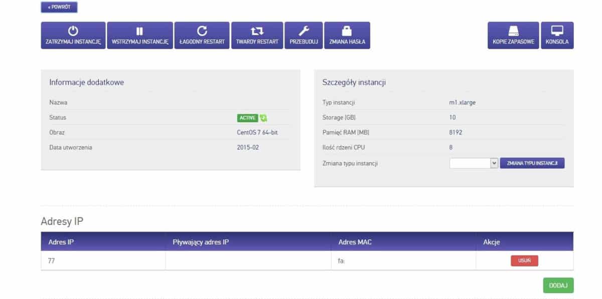 To co przyciągnęło moją uwagę to fakt, że chmura jest ulokowana w Krakowie, dlatego też jeżeli nasza strona dedykowana jest polskim użytkownikom to nie będzie problemów ze zbyt długim dostępem do serwera, a warto pamiętać, że każda milisekunda jest na wagę złota. Drugim aspektem, który oceniam niezwykle pozytywnie, a o którym już wspomniałem wyżej jest skalowalność usługi. W trakcie testów kilkukrotnie zmieniałem ustawienia chmury na opcje wyższe (wydajniejsze) i niższe. Czas oczekiwania na zmianę parametrów to dosłownie kilkanaście sekund. Mając w pamięci problemy jakie wiążą się z nagłym zainteresowaniem stroną i zbyt małymi zasobami serwera (zwłaszcza podczas większej aktywności użytkowników serwisu Wykop) to jest to możliwość niezwykle istotna, zwłaszcza dla blogerów. Taką opcję chciałbym widzieć u każdego usługodawcy.