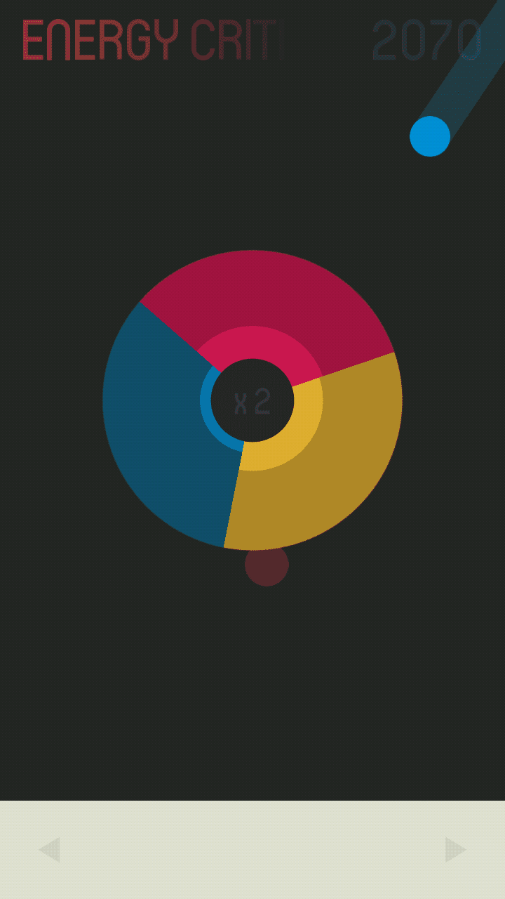 Zasady gry są niezwykle proste. Na środku planszy mamy duże koło wypełnione trzema kolorami. Z boków ekranu naszego urządzenia wyskakują kulki o różnych kolorach i wielkościach. Naszym zadaniem jest tak obrócić duże koło, aby mniejsze kulki wpadły do odpowiedniej „bazy”. Jak łatwo się domyślić zadanie to nie należy do najprostszych, ponieważ już po chwili musimy zmierzyć się z na tyle dużą ilością wypadających z różnych stron kuleczek, że trzeba się naprawdę mocno skupić, aby nie przegrać. Warto też zwrócić szczególną uwagę na wielkość poszczególnych spadających elementów. Im większy element tym więcej „życia” nam zabiera jeżeli dotknie złej bazy, zaś każdy punkt kontrolny ma własny poziom wytrzymałości. Gra kończy się gdy któraś z baz straci swoją moc. Warto zatem czasami się poświęcić i gdy mamy zbyt dużą ilość energii w jednej bazie, a w pozostałych zbliża się ona do zera to wykorzystać dostępne nadwyżki.
