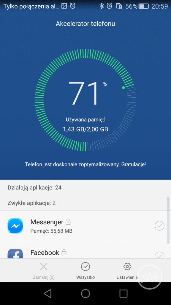 Znakomitym programem do optymalizacji działania smartfona jest Menedżer telefonu. Aplikacja usuwa niepotrzebne pliki tymczasowe, za sprawą jednego dotknięcia można wyłączyć programy działające w tle oraz zdefiniować sposób odbierania połączeń w określonych godzinach. Interesującym rozwiązaniem jest również inteligentne odblokowywanie ekranu. Funkcja umożliwia tymczasowo wyłączyć konieczności odblokowywania ekranu kodem, gdy z telefonem sparowane jest wybrane urządzenie sparowane przez Bluetooth.