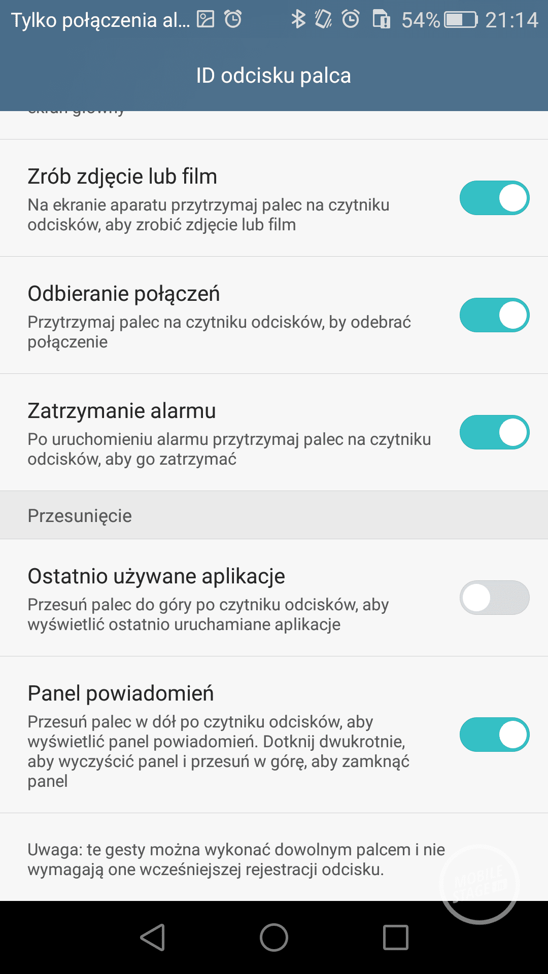 5X posiada doskonale działający czytnik linii papilarnych z rozszerzoną funkcjonalnością. Podstawowym zadaniem czytnika jest ochrona naszych danych przechowywanych w smartfonie i z tego zadania czytnik wywiązuję się perfekcyjnie. Procedura wprowadzania odcisków palców jest szybka i wygodna. Skaner linii papilarnych natychmiastowo rozpoznaje odcisk palca i odblokowuje telefon. Wyjątkowo rzadko należało ponownie przykładać palec do czytnika. Drugą funkcją czytnika jest obsługa podstawowych gestów. Po przeciągnięciu palcem od góry do dołu wysuwa się pasek powiadomień. Poprzez dotknięcie czytnika można również odebrać połączenie telefoniczne, wykonać zdjęcie czy też przesuwać oglądane zdjęcia w galerii. Smartfonem można również sterować za pomocą gestów takich jak podwójne dotknięcie ekranu w celu odblokowania smartfona lub rysowanie liter po zablokowanym ekranie.