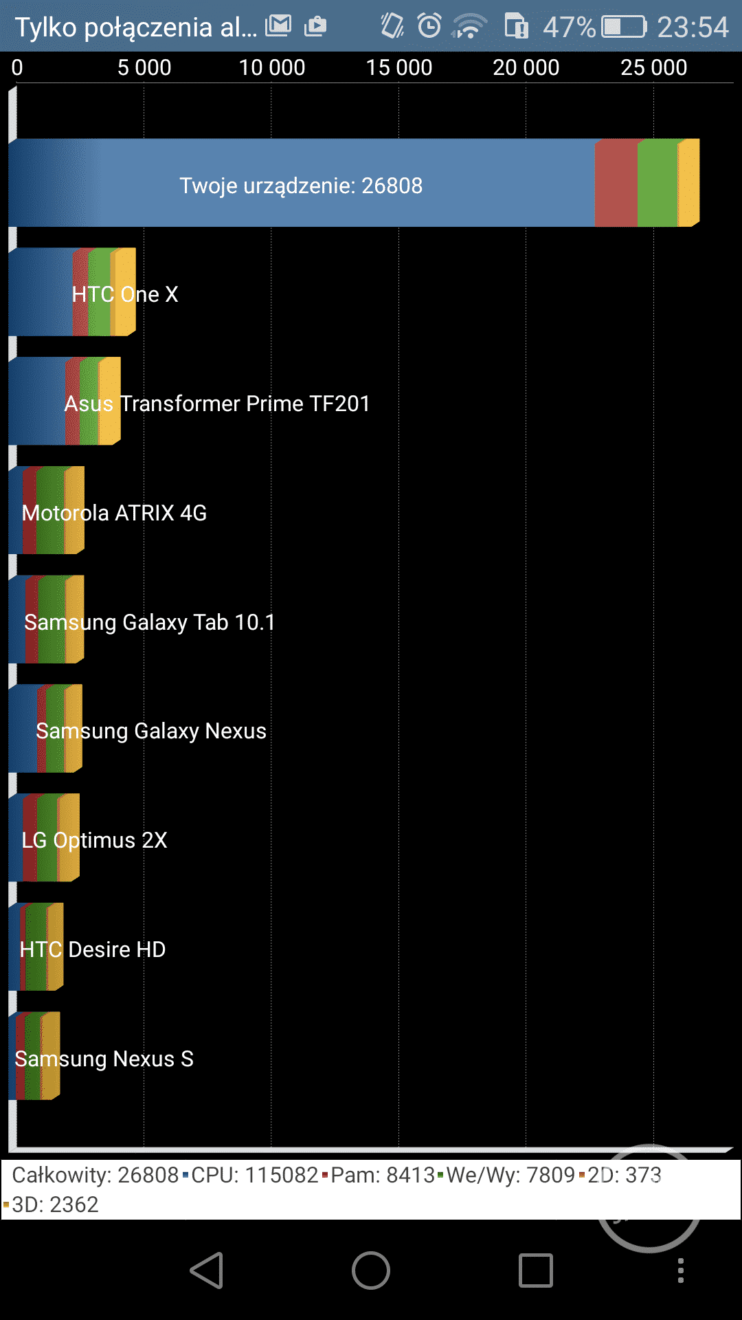 | Smartfon | AnTuTu | Quadrant | Vellamo HTML5 | 3DMark - Ice Storm Unlimited | Geekbench (Multi-Core) | PCMark (Work) |