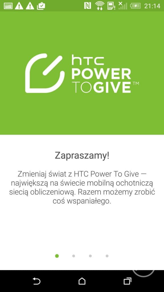 HTC Club, HTC Dot View i Power To Give traktuje jako dodatki, które nie musiały się znaleźć (podobnie jak Porady i Pomoc oraz Przewodnik HTC). HTC Club umożliwia nam dostęp do klubu oraz informacji z nim związanych. Niestety dla Polaków nie ma zbyt wielu akcji (aktualnie nie było żadnej), która by co konkretnego nam mogła zaoferować. HTC Dot View traktuje, jako reklamę etui, bo być może dzięki tej aplikacji, osoby, które nie wiedzą o jego istnieniu zapragną go mieć. Natomiast Power To Give to program umożliwiający wykorzystanie naszego urządzenia do badań naukowych. Po wybraniu eksperymentów, które chcemy wesprzeć telefon będzie pobierał w tle paczki danych, rozwiązywał zadania i wykonywał obliczenia, a później wysyłał je do laboratoryjnej bazy. Pomysł ciekawy i warty zainteresowania, zwłaszcza, że zazwyczaj i tak nie wykorzystamy pełnej mocy smartfona.