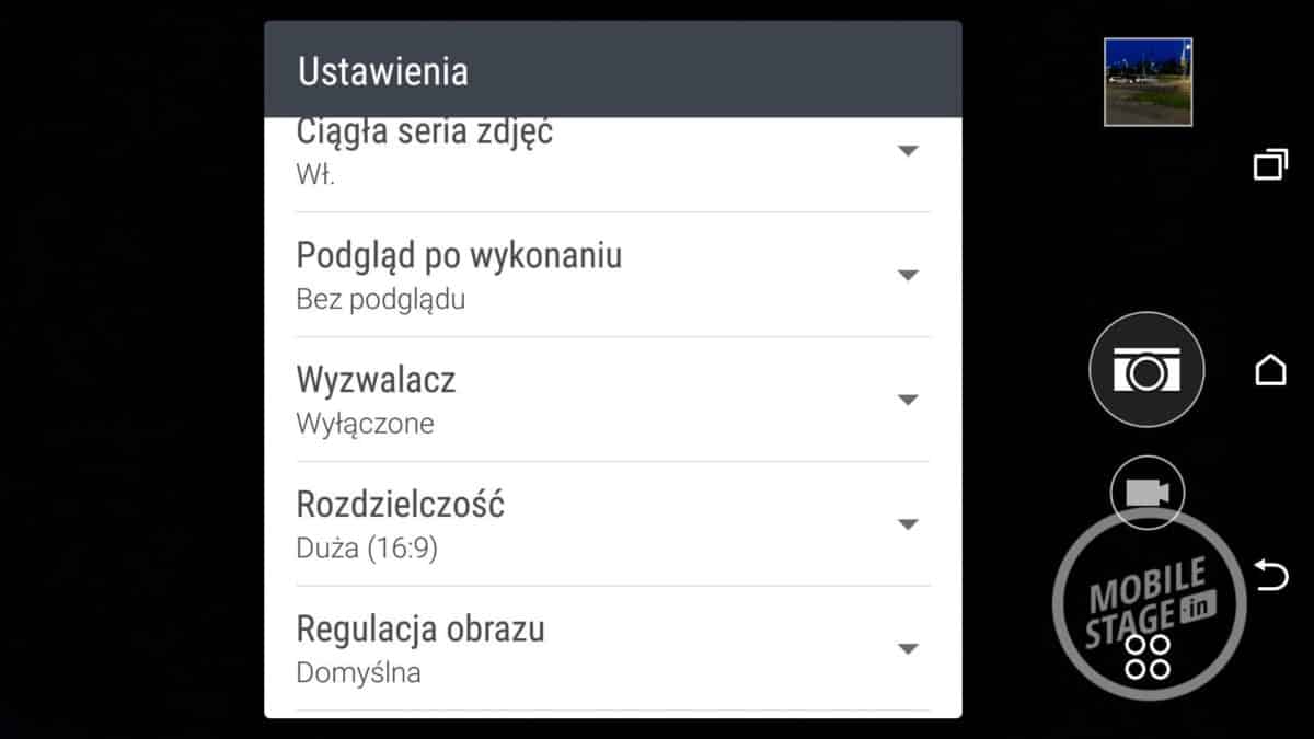 Smartfon umożliwia nam wybranie podtrybu wykonywanych zdjęć. Do wyboru mamy auto, noc, HDR, stabilizację obrazu, portret, krajobraz, tekst, makro i tryb ręczny, w którym możemy ustawić ISO, balans bieli, czas reakcji przesłony i ekspozycję. Dobre ustawienie „manuala” powoduje, że możemy uzyskać naprawdę ciekawe fotografie. Oprócz tego producent udostępnia nam wybór kadru (szeroki – 16:9, standardowy – 4:3 i kwadratowy – 1:1). Nie zabrakło też opcji dodatkowych: wykrywania uśmiechu, głosowy spust migawki (po wypowiedzeniu np. „smile”), ustawienie serii zdjęć, samowyzwalacza, rozdzielczości, regulacji kontrastu, nasycenia, ostrości, wyświetlania siatki, tagów i wyboru pamięci. Jak widać opcji jest naprawdę dużo, a przeciętny użytkownik może się w nich pogubić i zdać się na łaskę trybu auto, który nieźle radzi sobie z doborem odpowiednich ustawień.