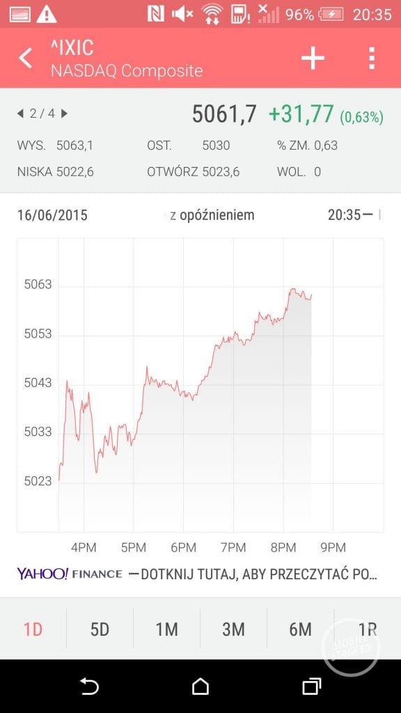 Ekran jest niezwykle czytelny i charakteryzuje się wysoką jasnością. Korzystanie z telefonu nawet w dużym słońcu nie stanowiło najmniejszego problemu. Brak jest w nim powłok odpowiednio odbijających światło słoneczne, ale mimo to wszystkie elementy były wyraźne, a obsługa nie nastręczała problemów. Nie mam żadnych zastrzeżeń do kątów widzenia (choć standardowo pod dużym kątem ekran nie jest idealnie jasny). Ekran nie ma jednak tak nasyconych kolorów jak Galaxy S5 (Desire Eye wyświetla 98.3% gamy kolorów RGB, zaś Galaxy S5 – 158.4%), poza tym Desire Eye miał problem z zaliczeniem testu Delta-E (mierzy on dokładność kolorów, więcej możecie poczytać tutaj). Idealna wartość uzyskana w tym teście to 0. Testowane urządzenie otrzymało wynik 8, a dla przykładu Samsung Galaxy S5 może pochwalić się wynikie 0.9, zaś HTC One M8 – 5.8*. Mimo to, moje subiektywne odczucie było pozytywne. Zarówno filmy, jak i obrazy oglądało się bez bólu oczu.