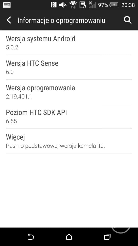 HTC Desire Eye posiada preinstalowany system Android 5.0.2 Lollipop oraz dedykowaną nakładkę HTC Sense UI 6.0. Po otrzymaniu urządzenia do testów przez półtora tygodnia miałem okazję korzystać jeszcze z Kit Kat, a dopiero po tym czasie uzyskałem aktualizację, która niestety została zaakceptowana przed zrobieniem zrzutów ekranu mogących służyć za porównanie.