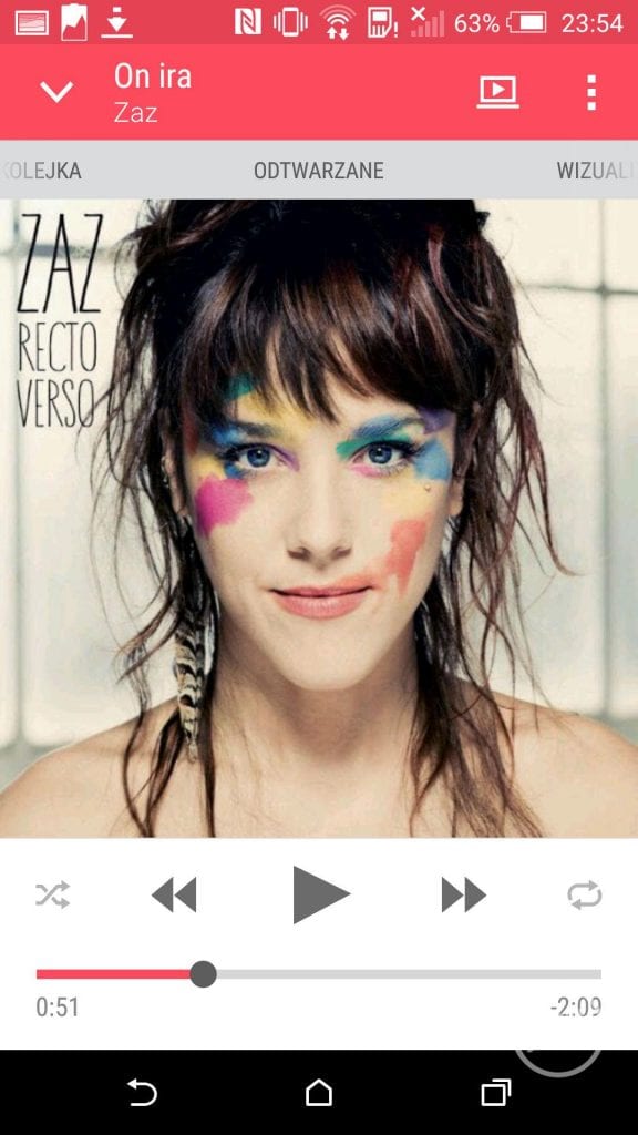 Odtwarzacz muzyczny, który choć jest ubogi w dodatkowe opcje to swoją podstawową rolę spełnia w sposób pełny. Do naszej dyspozycji oddano możliwość pobierania okładek albumów, wyświetlania tekstów piosenek, uruchamianie muzyki za pomocą dysków podłączonych do naszej sieci domowej oraz uruchamiania wizualizacji w trakcie odtwarzania muzyki. Nie pogniewałbym się, gdyby aplikacja była bardziej rozbudowana, choć sam, na co dzień korzystam i tak z zewnętrznej aplikacji.
