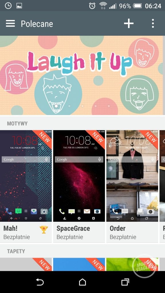 Smartfon posiada klasyczny układ menu oraz pulpitów, na których można umieszczać skróty do wybranych aplikacji. Nie zabrakło również blinkfeed – oddzielnego pulpitu, na którym można umieszczać wiadomości z wybranych serwisów. Aplikacje znajdujące się w szufladzie można posegregować według alfabetu, daty instalacji lub według własnych preferencji. Menu ustawień również uległo zmianom. Poszczególne działy zostały wyodrębnione w przejrzysty sposób. Kształt ikon, rodzaj czcionki oraz całą kolorystykę można dowolnie modyfikować poprzez zmianę motywu.