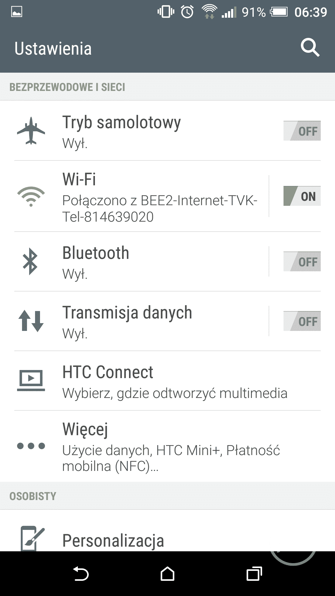 | System operacyjny | Android 6.0 Marshmallow + HTC Sense 7.0 |