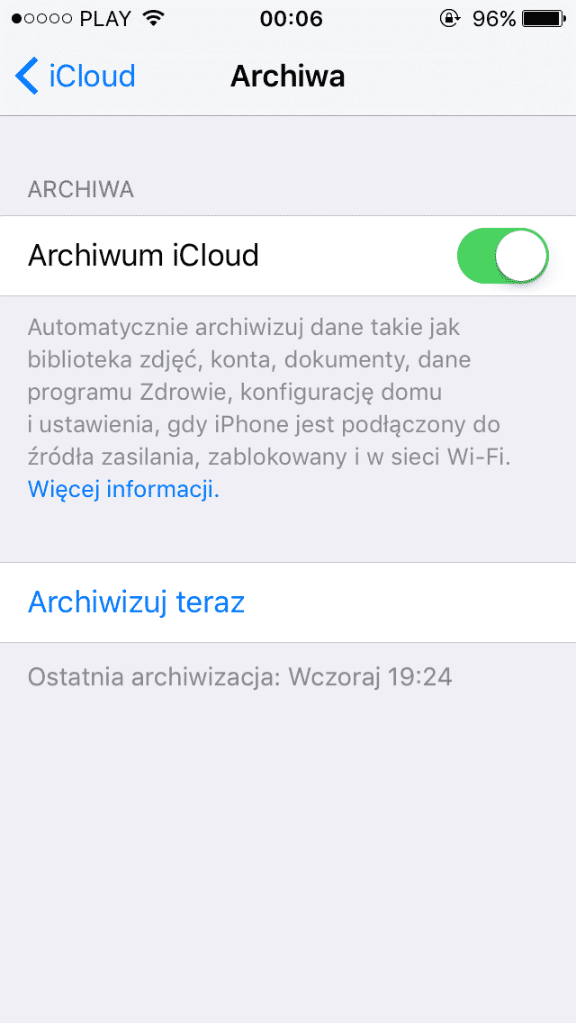 Dostęp do tak przygotowanego backupu można uzyskać nie tylko z poziomu telefonu, ale także przeglądarki internetowej, odwiedzając iCloud.com.