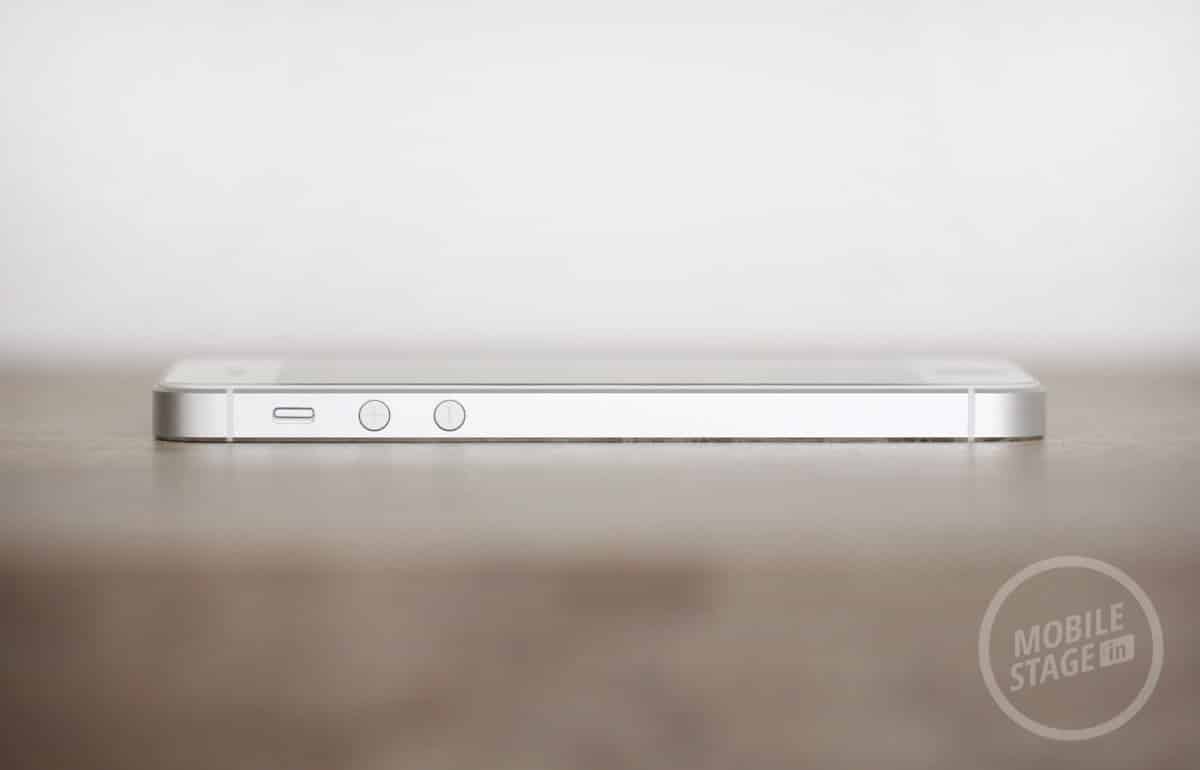 Po lewej stronie urządzenia odnajdziemy przyciski regulacji głośności oraz przełącznik służący do wyciszania smartfona, prawy bok iPhone SE posiada zaś jedynie slot na kartę nanoSIM.