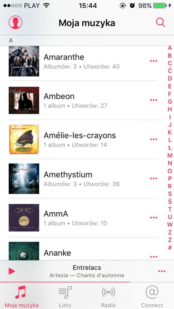 Jeśli zaś chodzi o aplikację Muzyka – nie mam żadnych zastrzeżeń do co intuicyjności jej obsługi, czy też samego działania. Jedyną wadą jest wsparcie jedynie dla najpopularniejszych formatów audio, w związku z czym, szczególnie osoby korzystające z nagrań zakodowanych bezstratnie, mogą być zmuszone do instalacji dodatkowego oprogramowania lub konwersji swojej kolekcji muzycznej do formatu Apple Lossless.