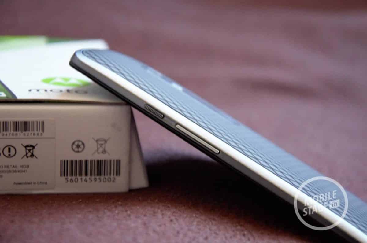 Samo urządzenie po wyjęciu z wnęki pudełka nie sprawia wrażenia wielogabarytowego (chyba, że wcześniej mieliśmy do czynienia tylko ze smartfonami z ekranami poniżej 5-cali). Przednia część Lenovo Moto X Play pokryta została taflą szkła z dość dużymi ramkami u góry i u dołu, na których umiejscowione zostały głośniki. Co ciekawe nie są to głośniki stereo. U góry mamy umiejscowiony głośnik do rozmów, zaś na dole do odtwarzania pozostałych dźwięków. Dodatkowo w górnej części znajdziemy obiektyw przedniej kamerki. Całość prezentuje się nieźle, choć jeżeli mieliśmy do czynienia z innymi modelami z serii Moto możemy czuć lekkie znużenie identyczną stylistyką. Jeżeli jest to jednak nasz pierwszy smartfon od tego producenta, surowa elegancja może przypaść do gustu. Zwłaszcza, że tylna część jest z delikatnym twistem w postaci zdejmowalnej, lekko gumowatej klapki z wyrytą fakturą przypominającą oponę. Niestety mimo, iż możemy zdjąć „plecki” to urządzenie nie posiada wymienialnej baterii. Z tego też powodu jest to wyłącznie element dekoracyjny, który możemy wymienić, kiedy będziemy chcieli poczuć jakąś zmianę (w ramach programu Moto Maker). Warto też wspomnieć, iż tył urządzenia został wyprofilowany, przez co jego grubość różni się pomiędzy krawędziami a środkiem. Może to sprawiać wrażenie, że smartfon jest dość gruby (na pewno mógłby być cieńszy, bo jego wymiary wynoszą 148x75x10.9 mm), ale przez to możemy stabilnie go trzymać w dłoni. Niektórym może też przeszkadzać jego waga (169 gram) jednak dla mnie nie była ona bardzo odczuwalna.