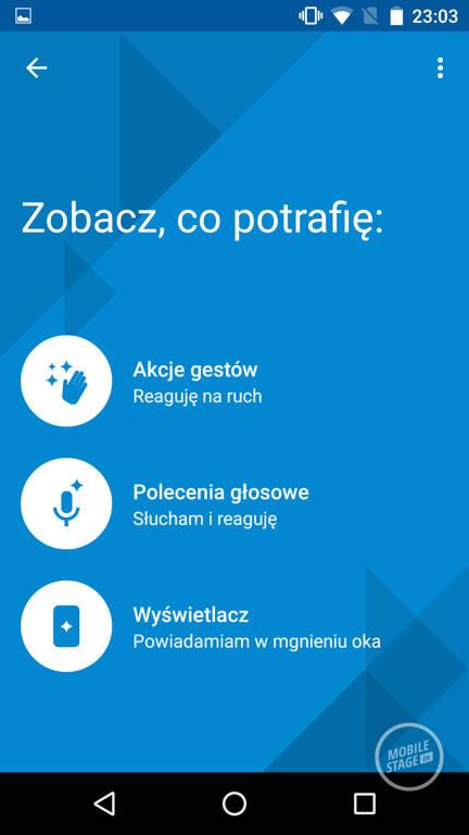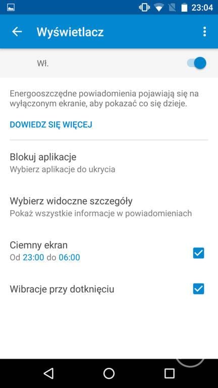 Kolejnym udogodnieniem jest Moto Display. Jest to funkcja, która sprawia, że na wygaszonym ekranie pokazywane są różne powiadomienia. Przesuwając ikonkę na ekranie blokady można przejść od razu do powiadomienia. Opisywana funkcja jest aktywowana przez poruszenie telefonem lub przesunięcie dłonią nad ekranem.