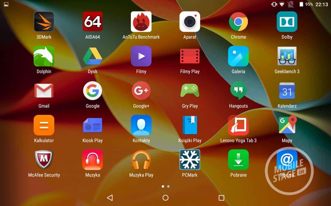 Lenovo Yoga Tab 3 posiada preinstalowany system Android 5.1.1, który posiada delikatnie modyfikowany interfejs. Zmiany są niewielkie i ograniczają się do nowej tapety i ikonek. Wpływa to oczywiście na szybkość działania urządzenia, które mimo budżetowych podzespołów umożliwia płynne działanie, które nie kończy się komunikatami o zbyt małej wolnej ilości pamięci. Producent też (na szczęście!) nie dołącza licznych dodatkowych aplikacji. Oprócz standardowej paczki Android + Google znajdziemy program Dolby (do obsługi dźwięku), McAfee Security, SHAREit oraz SYNCit.