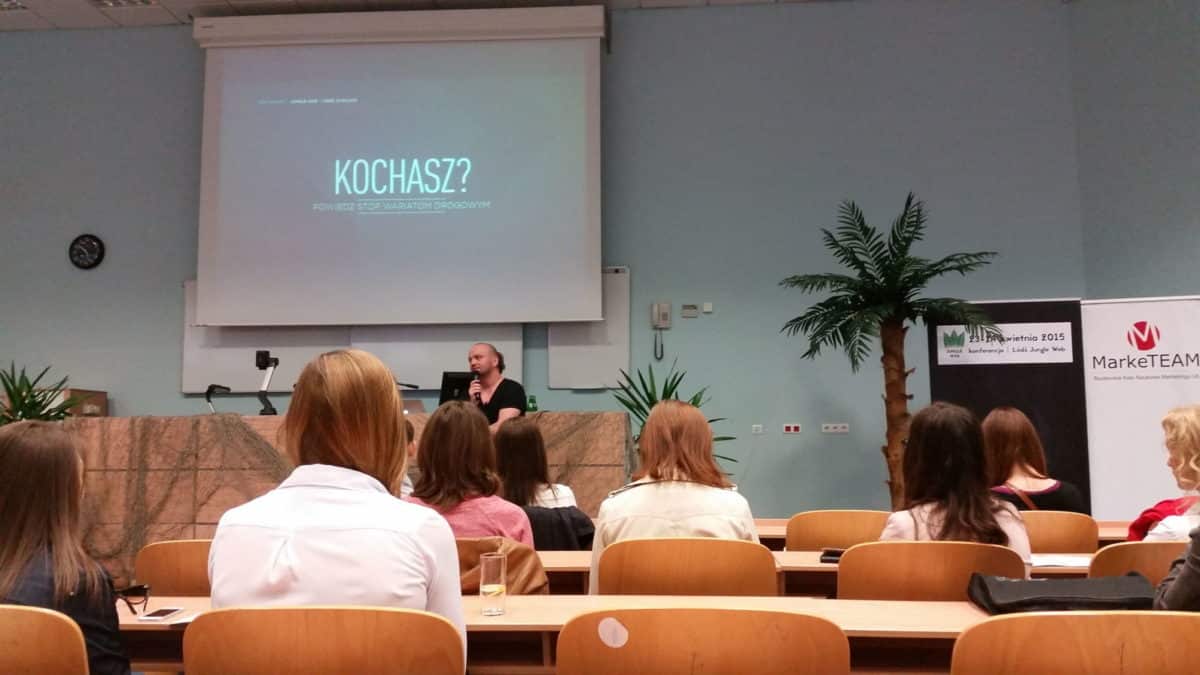 Po szybkiej kawie, która postawiła nas na nogi rozpoczął się pierwszy panel (łącznie wczoraj przygotowano trzy panele, w każdym były minimum trzy wystąpienia oraz osobno, dla osób, które zapisały się wcześniej za pomocą dedykowanej platformy, przygotowano warsztaty techniczne.) Pierwszymi prelegentami była Jolanta Piela z K2, która opowiadała o mediach społecznościowych i ich wykorzystywaniu, Dawid Szczepaniak z VML, który na przykładzie kampanii „Kochasz? Powiedz stop wariatom drogowym” przygotowanym dla PZU udowodnił jak ważna jest dobrze przemyślana kampania marketingowa oraz Łukasz Kaczmarek z OSOM Studio, który skupił się na analizie rynku mobile i zaletach tworzenia stron responsywnych oraz aplikacji mobile.