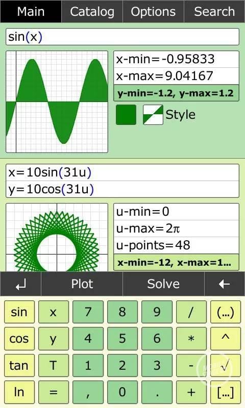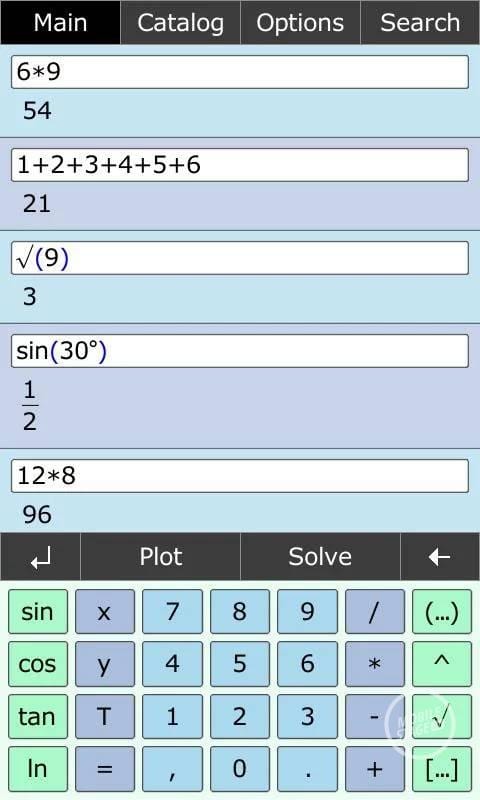 Kalkulator obsługuje oczywiście wszystkie podstawowe działania, jak również pierwiastkowanie i funkcje trygonometryczne. Jest to jednak tylko wierzchołek góry lodowej. Umożliwia również obliczanie pierwiastków równania kwadratowego, pochodnych oraz całek. Do tego dochodzą operacja na macierzach i wektorach. A gdy i takie możliwości to za mało, zawsze można skorzystać z opcji rysowania wykresów, zarówno dwu- i trójwymiarowych.