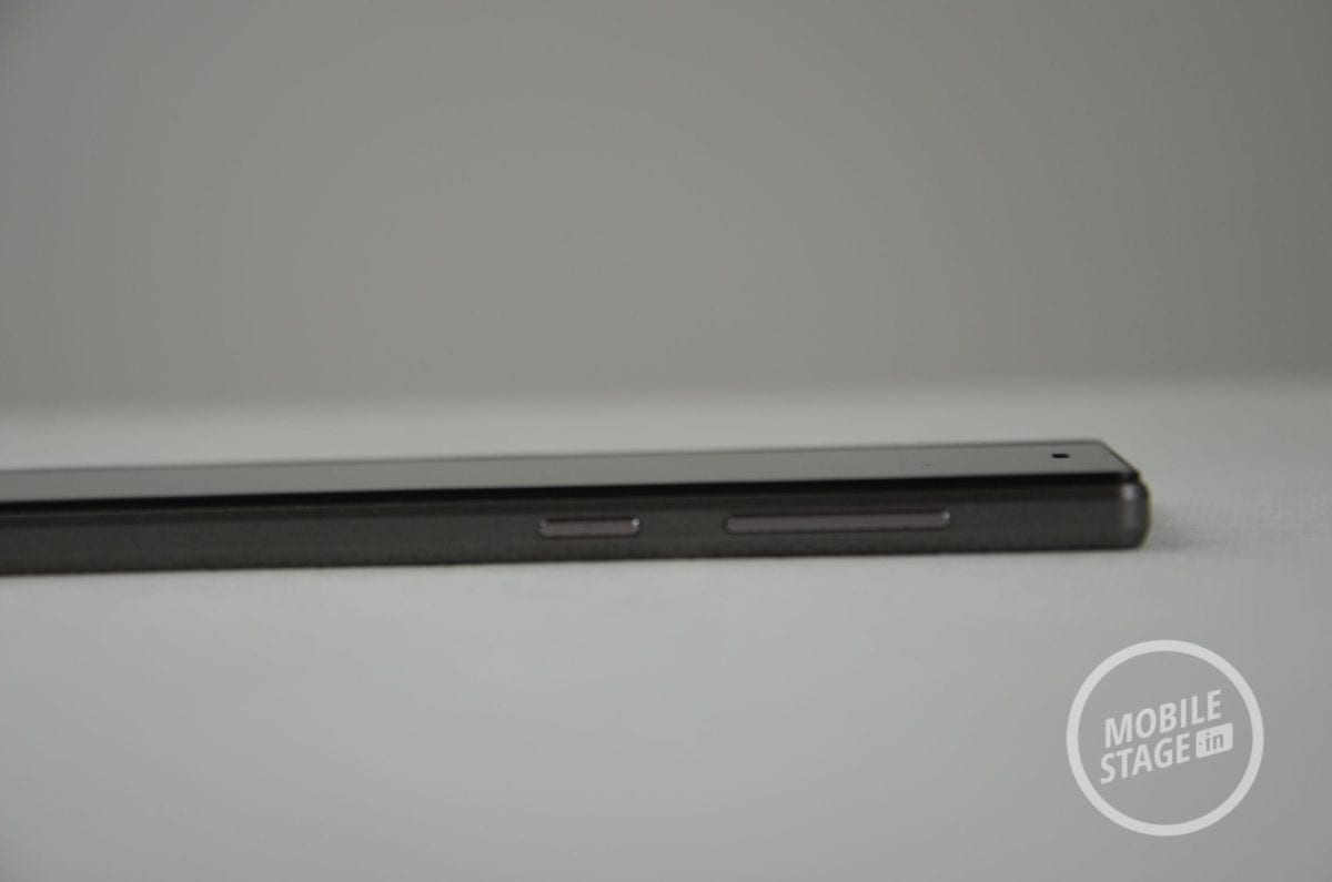 Tył urządzenia to obiektyw aparatu z diodą doświetlającą LED oraz głośnik zewnętrzny. Przyjemny efekt sprawia czarne tło znajdujące się pod szkłem z logiem i napisem Infinity. Boki urządzenia mają jednolitą, metaliczną strukturę w kolorze ciemnego brązu, który dość przyjemnie łączy się z czarnym przodem i tyłem. Z lewej strony smartfona umiejscowiono slot na karty microSD i microSIM w formie tacki, którą możemy wyjąć za pomocą szpilki, którą otrzymujemy w zestawie. U góry znajdziemy wejście mini-jack 3.5 mm, u dołu mikrofon i wejście microUSB z OTG, zaś z prawej strony przyciski zasilania i regulacji głośności. Te ostatnie mimo, iż działają niezwykle delikatnie, nie są słabej jakości i są dobrze spasowane. Nie musimy się obawiać, że mogą się one uszkodzić.