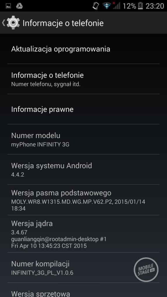 myPhone Infinity 3G posiada preinstalowany system Android 4.4.2 KitKat. Jest to czysta wersja systemu, bez nakładek producenta, ale z dodatkową zawartością, która nie jest obecna w innych, podobnych urządzeniach. Do owej dodatkowej zawartości mogę zaliczyć m.in. możliwość włączenia Smart Cover i podstawową obsługę gestów (wyciszenie przed odwrócenie, automatyczne przełączenie głośnika, przebudzenie dotknięciem i auto-odbieranie przez zbliżenie). Decyzja o wyborze czystego systemu wpływa pozytywnie na niskie obciążenie urządzenia, które działa płynnie i nie doświadczyłem nieprzyjemności związanych z zawieszaniem się systemu.