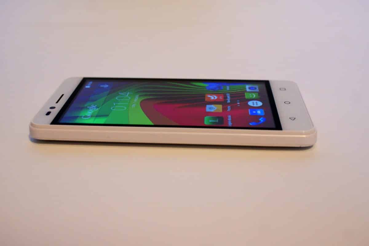 Z przodu urządzenia znajdziemy 4,5 calowy ekran o rozdzielczości 480×854. Nad nim znajdują się czujniki, przednia kamerka oraz głośnik słuchawki, natomiast pod nim – 3 przyciski dotykowe znane z innych urządzeń z Androidem Lollipop. Na lewej krawędzi urządzenia nie dostrzeżemy żadnych przycisków, czy portów. Dolna krawędź to złącze microUSB oraz mikorfon, a górna to standardowy mini jack. Z prawej strony widzimy klawisze głośności oraz blokady ekranu. Na tyle znajdziemy aparat, lampę błyskową oraz głośnik urządzenia.