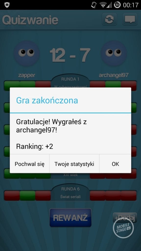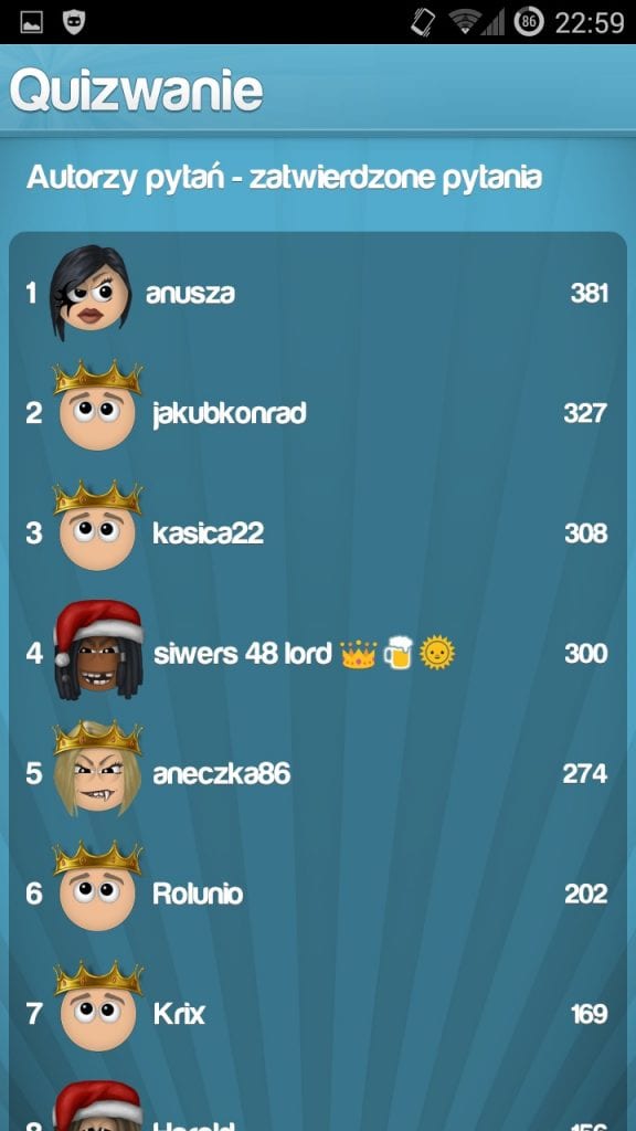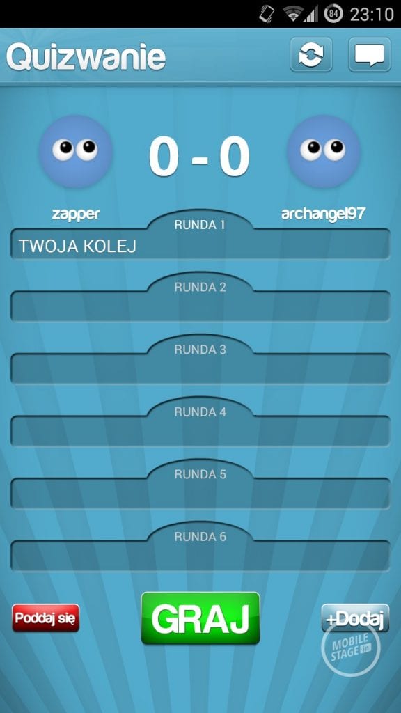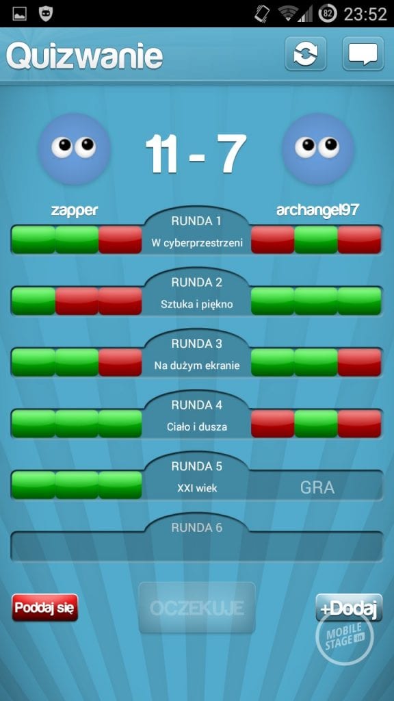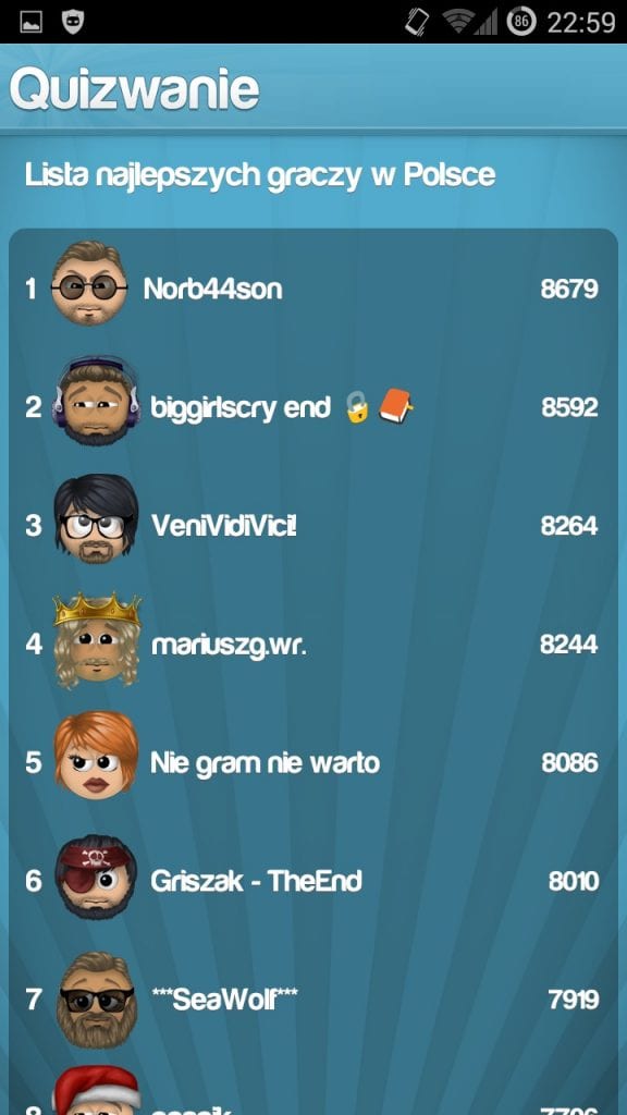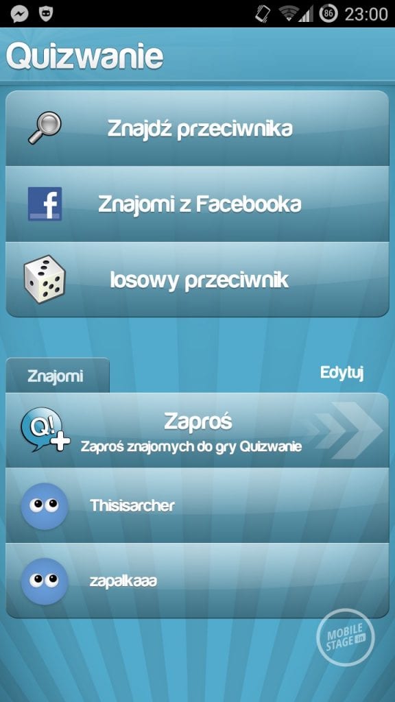 Quizwanie jak już wspomniałem na początku jest grą, w której musimy zmierzyć się z prawdziwymi graczami. Nowych graczy może nam wyszukać system, ale i również jeżeli znamy ich nicki możemy ich dodać ręcznie i zapraszać do zabawy. W związku z tym, że jest to gra turowa to pomiędzy kolejnymi pytaniami mogą następować czasami dość duże przerwy, nie dłuższe jednak niż 36 godzin (nie podjęcie rywalizacji przez taki czas wiąże się z poddaniem się).