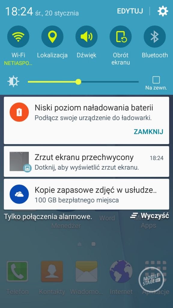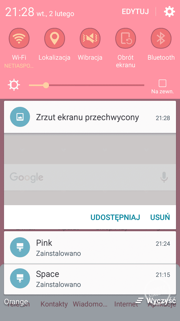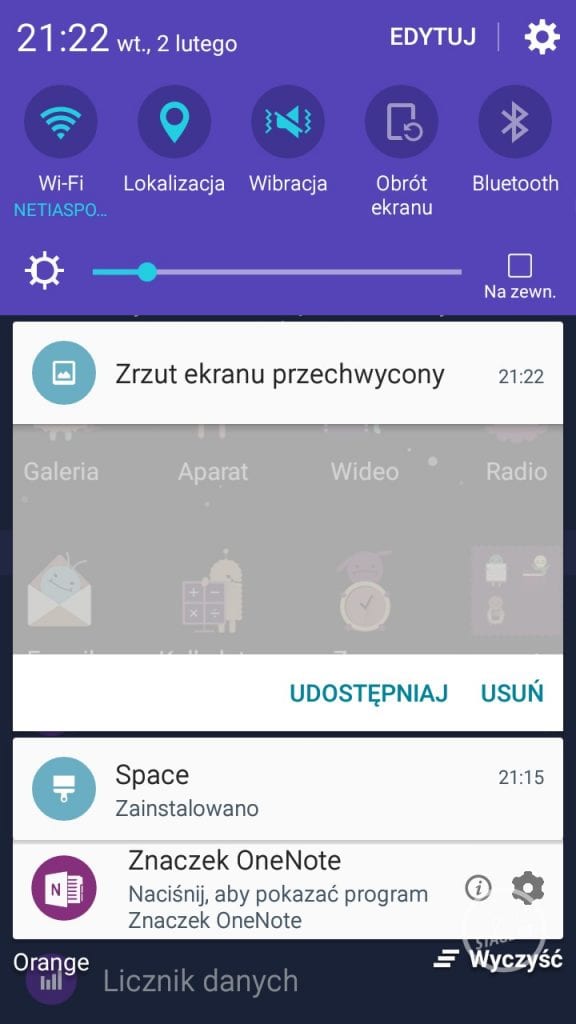 Samsung Galaxy J5 wyposażony został w matrycę Super AMOLED. Ma ona swoich przeciwników, którzy mówią, że wyświetlane przez nią kolory są zbyt intensywne. Ma też fanów, którzy nie wyobrażają sobie bez niej telefonu. Ja stoję gdzieś pośrodku. Fakt, matryca wyświetla bardzo nasycone kolory, ale według mnie jest to zaleta. Telefon wygląda wtedy po prostu ładnej, niż gdyby wyświetlane przez niego barwy były maksymalnie realistyczne. W Samsungu Galaxy J5 nie uświadczymy tego przesycenia. Nie ma tu bowiem opcji znanej z telefonów wyższej klasy tego producenta, którą jest zmiana nasycenia barw. Przy omawianiu wyświetlacza muszę wspomnieć o braku czujnika światła, przez co jasność ekranu trzeba dopasowywać ręcznie. Jest to bardzo niewygodne, kiedy wieczorem przyciemnimy ekran, rano wstając przy słońcu świecącym przez okno, musimy za każdym razem ręcznie rozjaśnić ekran, aby móc z niego skorzystać. Sytuacja robi się jeszcze bardziej dramatyczna, kiedy używamy jednego z bardziej wrednych budzików, które każą nam obliczać jakieś równania albo robić zdjęcia przedmiotom o określonym kolorze. Daje się to we znaki też, kiedy wychodzimy z ciemnego pomieszczenia na ostre słońce. Mamy za to opcję “na zewnątrz”, która znajduje się na bok paska do rozjaśniania na belce. Kiedy ją włączymy, ekran naszego telefonu będzie przez 15min działał na najwyższej jasności. Podczas testów nie darzyło mi się z tej funkcji korzystać, ale jest to bardziej wynikiem niewielkiej ilości dni słonecznych, a nie jej bezużytecznością.