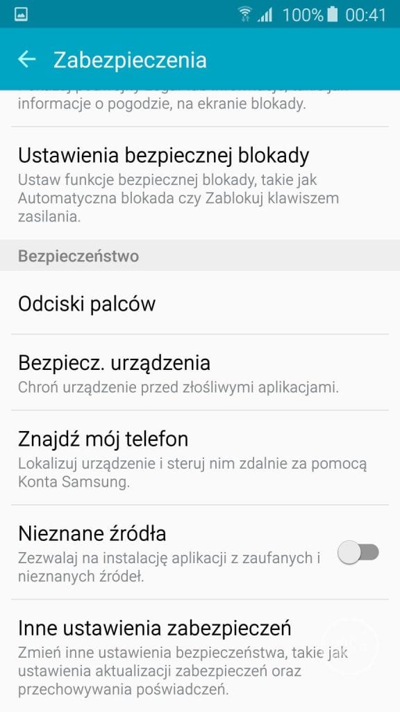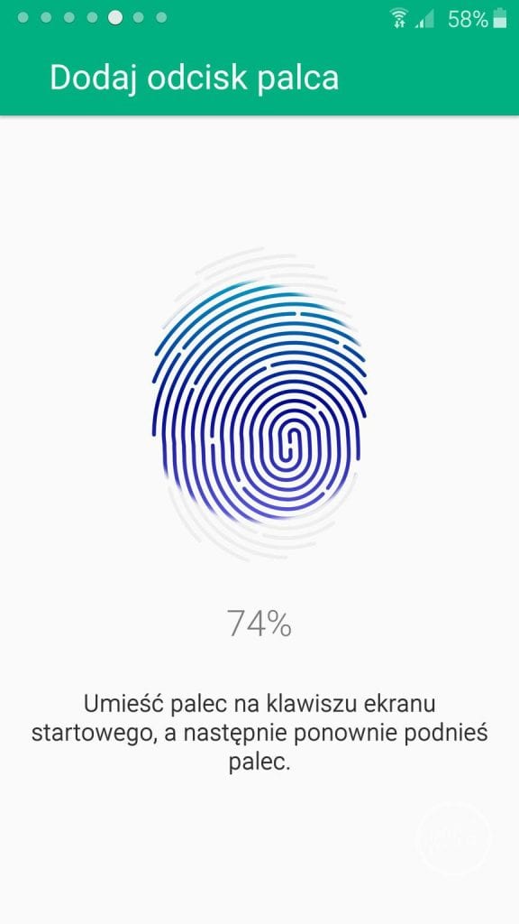 System umożliwia nam zabezpieczenie telefonu za pomocą odcisku palca. Pierwsze skanowanie trochę trwa i mimo iż sam moduł działa sprawniej niż w przypadku Galaxy S5 to i tak pozostawia jeszcze sporo do życzenia. Bardzo często musiałem kilka razy przykładać palec, aby telefon poprawnie go odczytał.