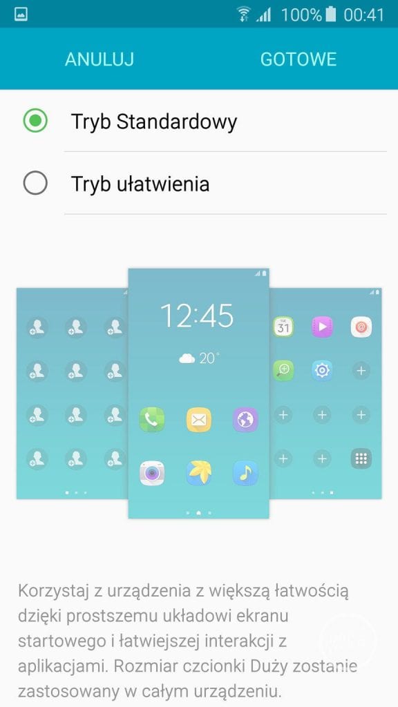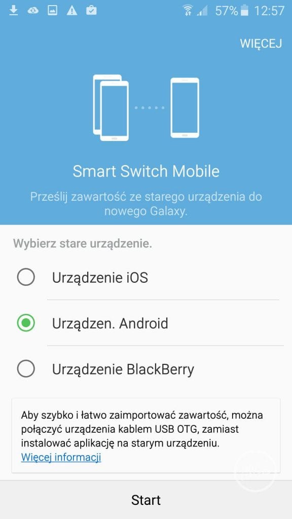 Jednakże zmiany są już widoczne w chwili pierwszego uruchomienia smartfona. Na początek przechodzimy krótki przewodnik, który pozwoli nam założyć odpowiednie konta lub zalogować się na nie oraz ustawić podstawowe ustawienia. Jeżeli już posiadamy smartfony z Androidem, iOS-em lub BlackBerry to możemy skorzystać z szybkiego przeniesienia danych (z Galaxy S5 przeniesienie 20 GB danych trwało około 50 minut). Całość odbywa się za pomocą aplikacji Smart Switch i jest rzeczywiście intuicyjnym i prostym rozwiązaniem.