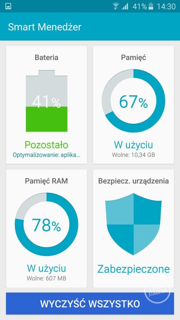 Wśród dostępnych programów nie zabrakło też znanych już pozycji, takich jak S Notatka, Smart Manadżer (który jest naprawdę dopracowaną aplikacją, która pozwoli zorientować się w stanie naszego urządzenia, choć w mocno okrojonej formie), delikatnie zmienił się natomiast wygląd zegarka. Ze starych rozwiązań producent pozostawił ruchy i gesty, choć jest ich trochę mniej, ale są to propozycje, z których zazwyczaj sam korzystam w S5. Nadal też możemy ustawić tryb ułatwienia, który skierowany jest dla bardzo początkujących użytkowników Androida. Samsung pozostawił też tryb wielu okien, który uruchamiamy poprzez naciśnięcie przycisku wielozadaniowego pod ekranem. Wystarczy wybrać aplikacje i kopiować między nimi dane.