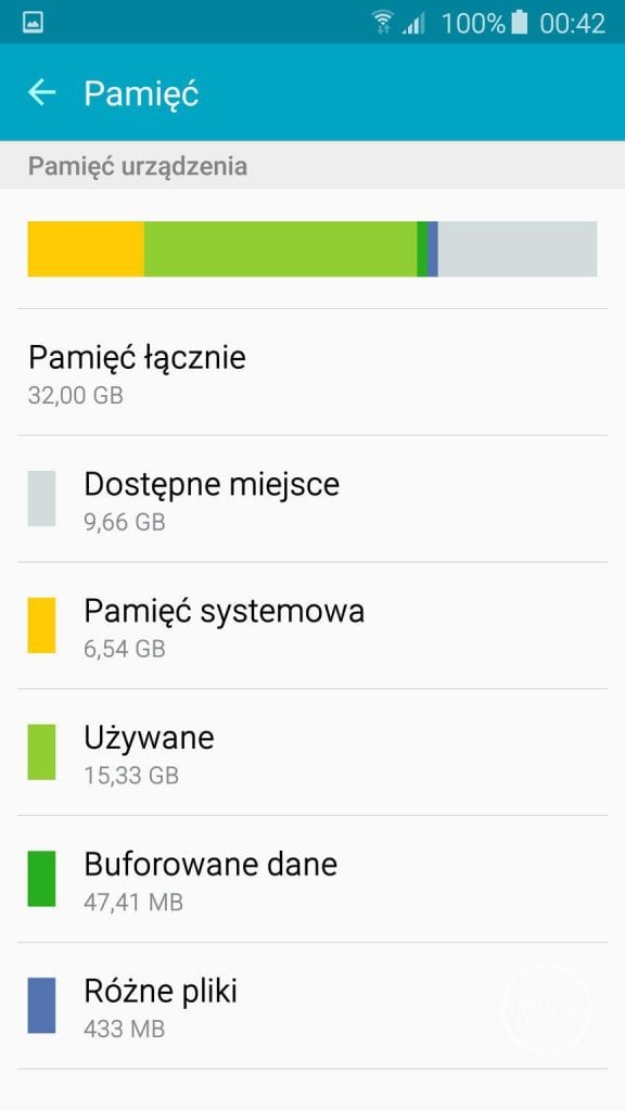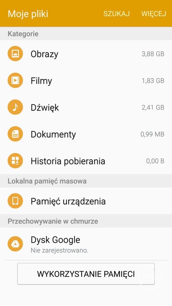 Jako, iż Samsung Galaxy S6 nie umożliwia nam rozszerzenie pamięci o karty microSD musi nam wystarczyć przestrzeń wbudowana. W przypadku 32 GB wersji do dyspozycji użytkownika pozostaje 24.5 GB miejsca na dane. Jest to trochę mało, zwłaszcza iż w moim przypadku zdjęcia + muzyka zajmowały 26 GB i musiałem zrezygnować z muzyki, a przez okres testów korzystałem wyłącznie ze Spotify.
