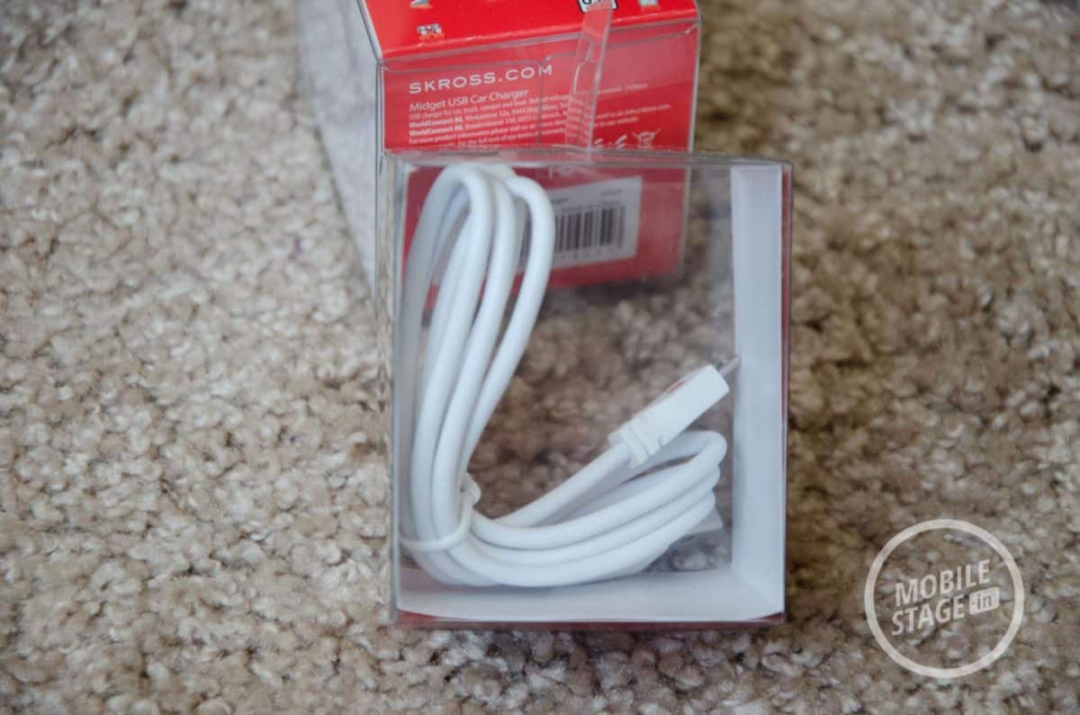 Podobne wrażenie sprawia również kabel USB firmy SKROSS. Podobnie jak pozostałe akcesoria został on wykonany w kolorze białym. Kabel jest dość gruby i choć trochę podobny zewnętrznie do ładowarek Samsunga to w tym wypadku jest gabarytowo większy i bardziej sztywny. Jest dość długi, bo ma aż 1 metr.