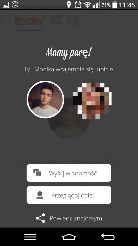 I jeszcze na koniec powiem jak ja to widzę. Bo często spotykamy się z opinią, że korzystanie z tego typu aplikacji czy portali jest złe. Uważane jest to za powód do wstydu, jakiś swoisty nietakt ze strony korzystającego, taka miara naszej życiowej nieudolności. I jeszcze bardzo często przytaczany aspekt Wojtka, który w wieku dwunastu lat ma ich czterdzieści i poluje na małe niewinne dziewczynki. Racja – nigdy nie wiadomo kto jest po drugiej stronie, ale można się przed tym zabezpieczyć. Wcale nie trzeba spotykać się z takimi osobami w nocy, w ciemnej uliczce i trafić na grubego Janusza zamiast pięknej blondynki. Wystarczy zdrowy rozsądek a wszystko będzie tak jak być powinno. Ze swojej strony polecam, można poznać ciekawe osoby, nie koniecznie z nastawieniem na miłość, ale na pewno na koleżeństwo, a inne rzeczy przychodzą z czasem. Nie należy się tego wstydzić, a jeżeli ktoś was z tego powodu wyśmiewa, najlepszym sposobem jest ignorowanie go. Nie warto przejmować się takimi rzeczami. Polecam spróbować, wejść w Google Play, wpisać Tinder, i trochę sobie poprzesuwać.